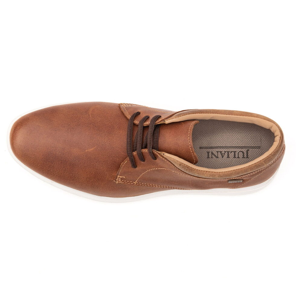 Bruce 05 es un calzado concebido para el uso cotidiano, confeccionado en cuero vacuno y con una base de eva inyectada que conjuga las mejores prestaciones en materia de confort y durabilidad debido a su condición de ultra liviano con un peso que no supera los 250g cada uno. Su estilo casual conserva las características de elegancia sin resignar comodidad.